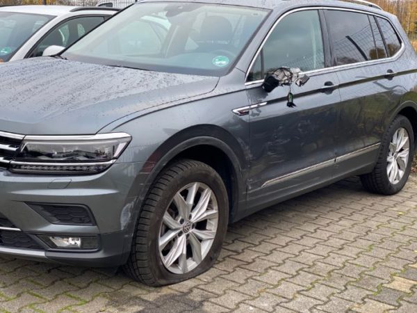 Geparktes Fahrzeug beschädigt durch Lieferwagen. Achsgeometrie verzogen, Lenkgetriebe musste erneuert werden: